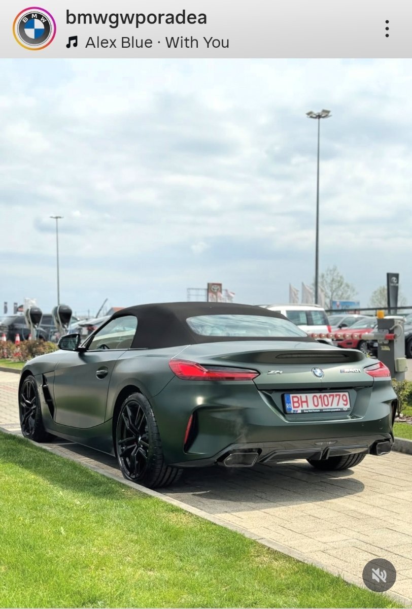 Cele 1600 de kg chiar nu se simt deloc. Pastrand proportiile, cea mai apropiata masina cu raport masa/putere asemanator pe care am condus-o a fost un Porsche 911 Carrera 4S gen 997.1 - tot manuala, dar 4x4 si cam cu vreo 250kg mai usoara. Cred ca la Z cel mai mult se simte latimea. Vis-a-vis de soft top - te referi la zgomot? Se simte dar nu pot sa zic ca ma deranjeaza. De undeva de pe la 80 km/h mai bine asculti motorul decat muzica. O fi el Harman Kardon dar degeaba. Daca te referi la cum e sa mergi cu el decapotat...nu am apucat :)) din cauza vremii. De altfel nici nu prea am avut timp sa fac km cu masina, abia am trecut de 250 (da....stiu...n-am omis vreun zero). Nu, din Bucuresti . Pana acum am mai vazut doar una singura M40i+manuala, tot in Bucuresti, avea intr-adevar suportii de numere de la Grup West DAR culoarea era Frozen Deep Green Metallic si jantele "standard" pentru pachetul Pure Impulse, respectiv style 800M cu dimensiuni staggered, 19/20. Arata exact ca in pozele/filmele de promovare.