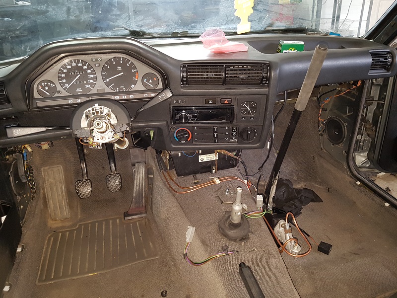 Am scos motorul afara. Am revizuit motorul de 3.0. Punem caseta de directie de E36 care e mai scurta. Punem si servo. Punem pompa de frana cu tulumba dubla. Punem aer conditionat.