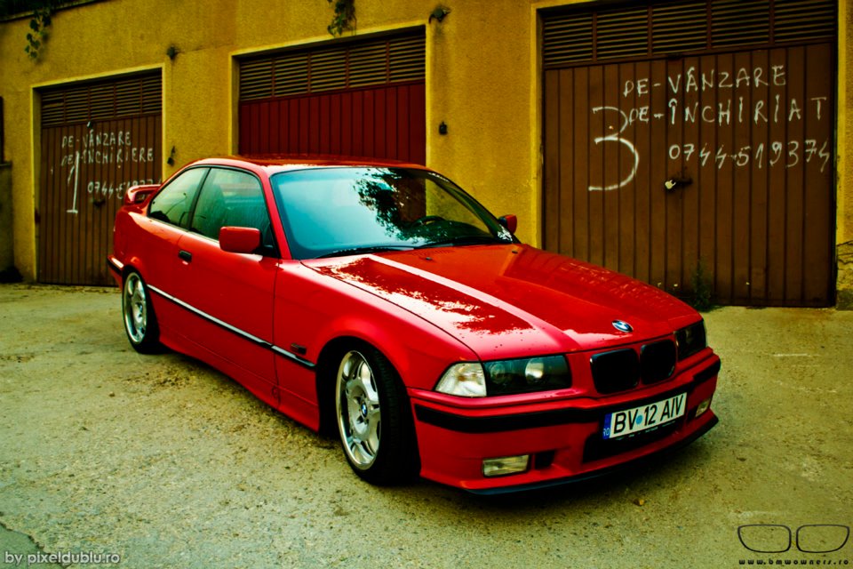 anul 2008, e36 rosu, app pe burta, jante nezgariate, late, lucioase, seara, locatia obor, dudie in dreapta.